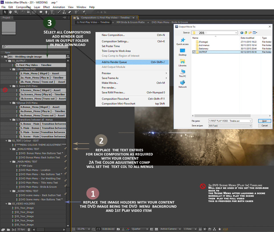STEP3.... Select all the compositions shown highlighted and choose Composition - add to render queue
